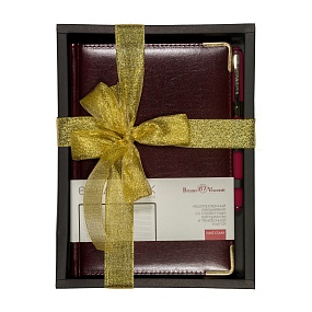 ЕЖЕДНЕВНИК В5 "TOSCANA" (БОРДОВЫЙ) В СЕРЕБPЯНОЙ ПОДАРОЧНОЙ МЕТАЛЛИЧЕСКОЙ КОРОБКЕ