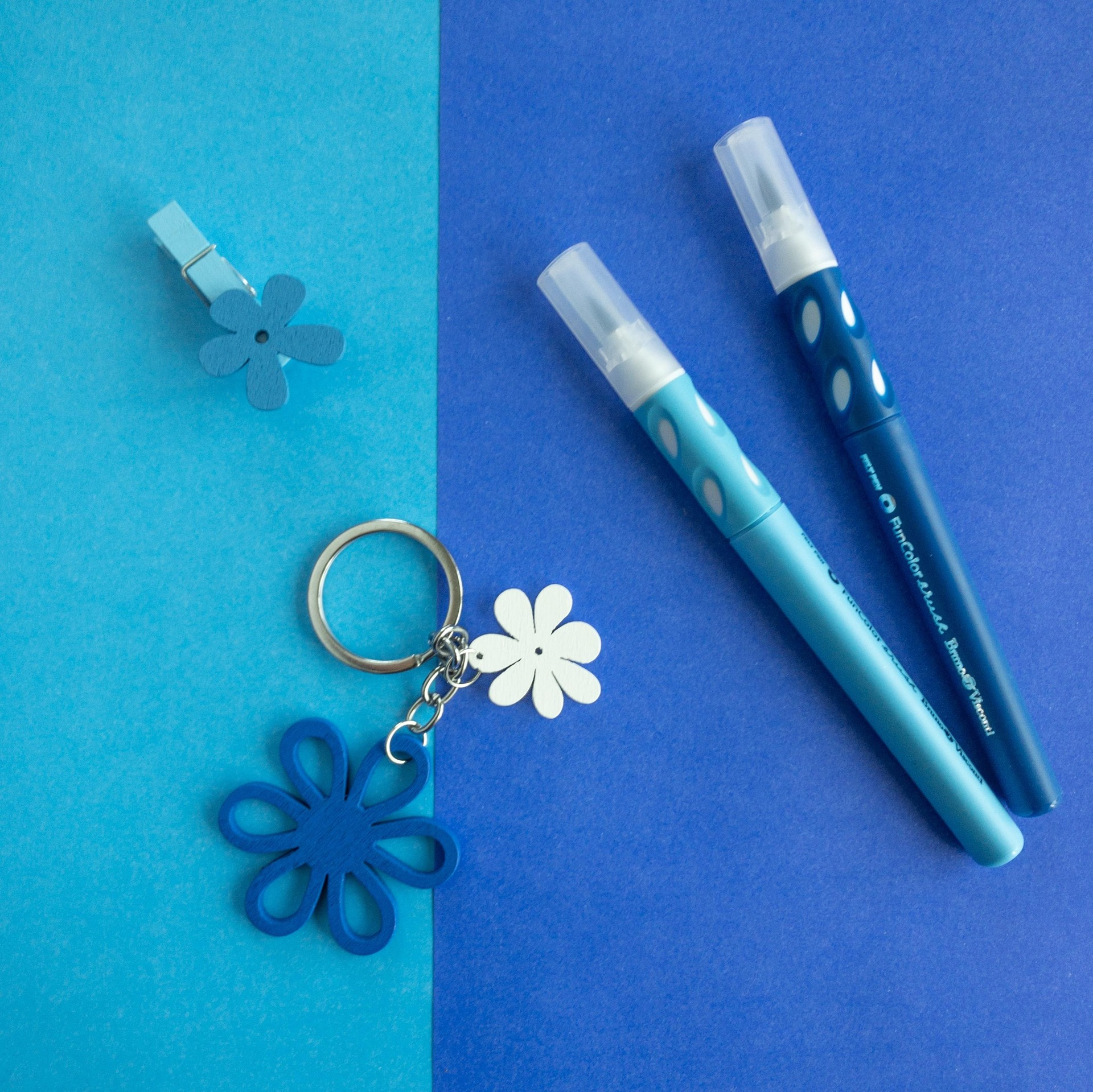 Красивый и удобный в использовании брелок в виде цветка синего цвета.